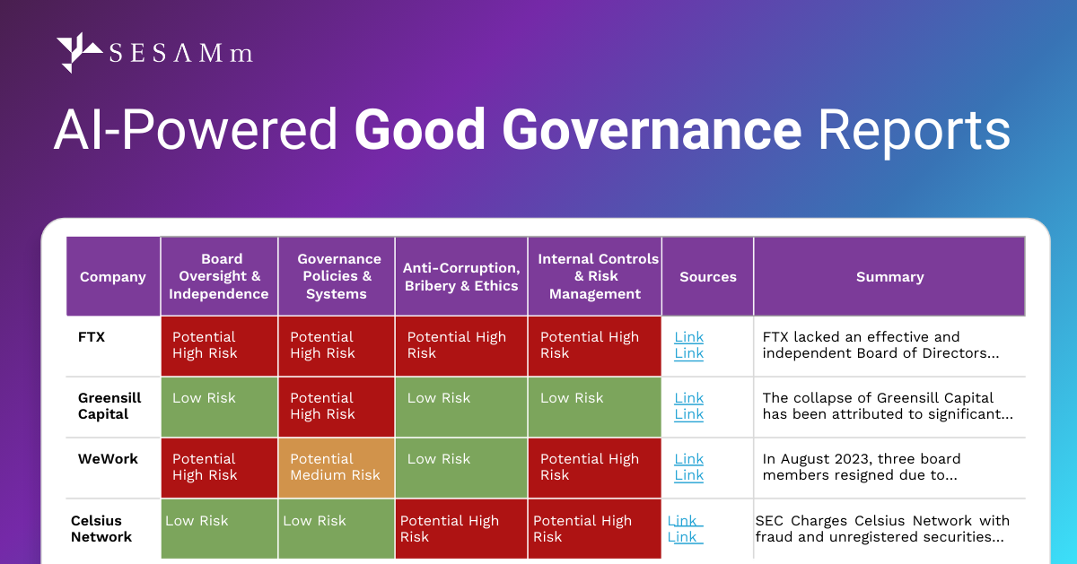 SESAMm Introduces its Latest AI Report: The Good Governance Report for Faster, Defensible Risk Assessment