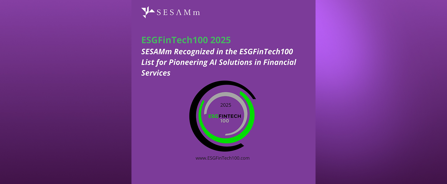 Paris, France – November 12, 2025 – SESAMm, a leader in AI-powered text analysis for financial services, proudly announces its inclusion in the ESGFinTech100 list by FinTech Global for the third consecutive year. This recognition highlights SESAMm's commitment to sustainability and ESG through the application of advanced AI technologies.