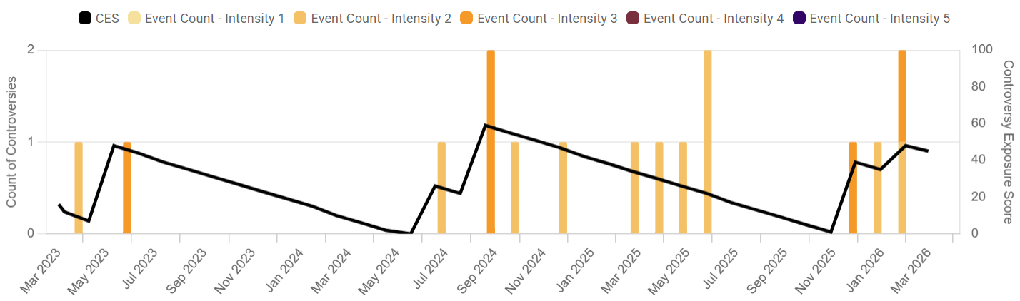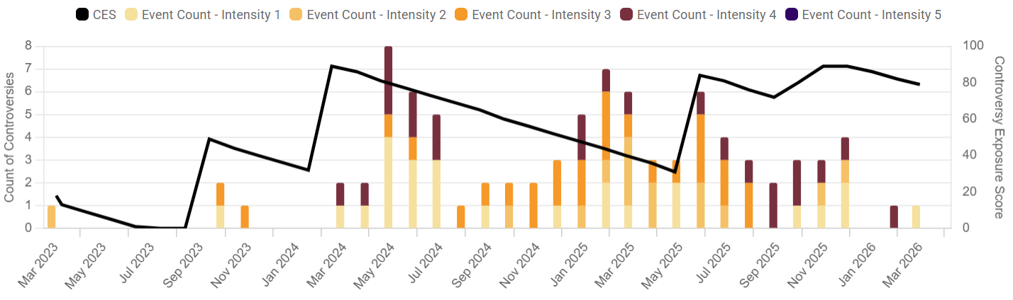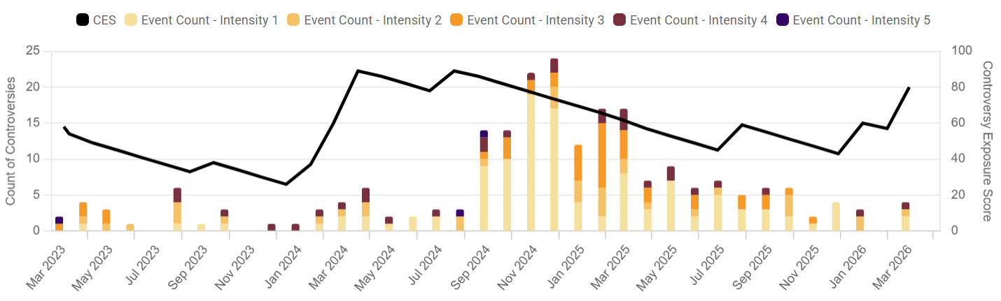 With a controversy exposure score (CES) of 80/100, Supermicro’s ESG profile is dominated by extreme governance risks centered on systemic accounting failures and geopolitical compliance breaches. The company is currently battling a U.S. Justice Department probe, Nasdaq delisting threats, and a series of securities fraud lawsuits following a 2024 accounting scandal that forced the search for a new CFO and echoed a prior $17.5 million SEC fine from 2020.