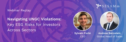In our recent webinar, “Navigating UNGC Violations: Key ESG Risks for Investors Across Sectors,” SESAMm CEO Sylvain Forté and Head of Sales Andrew Bernstein break down the latest research on corporate alignment with the UN Global Compact (UNGC). The session also marks the launch of our UNGC Breach Detection tool, designed to help investors monitor and address UNGC-related ESG risks in line with SFDR’s PAI 10.
