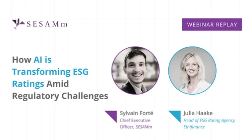 In our latest webinar, "How AI is Transforming ESG Ratings Amid Regulatory Challenges," SESAMm’s CEO and Co-founder Sylvain Forté and Julia Haake, Head of ESG Rating Agency at EthiFinance explored how artificial intelligence is reshaping the way ESG ratings are developed in the face of increasing regulatory pressures. The session focused on AI's transformative role in improving the accuracy, transparency, and efficiency of ESG ratings while navigating the complex regulatory environment in the EU and UK.